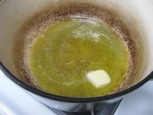 In a Dutch oven or large heavy pot, melt the butter with the oil.