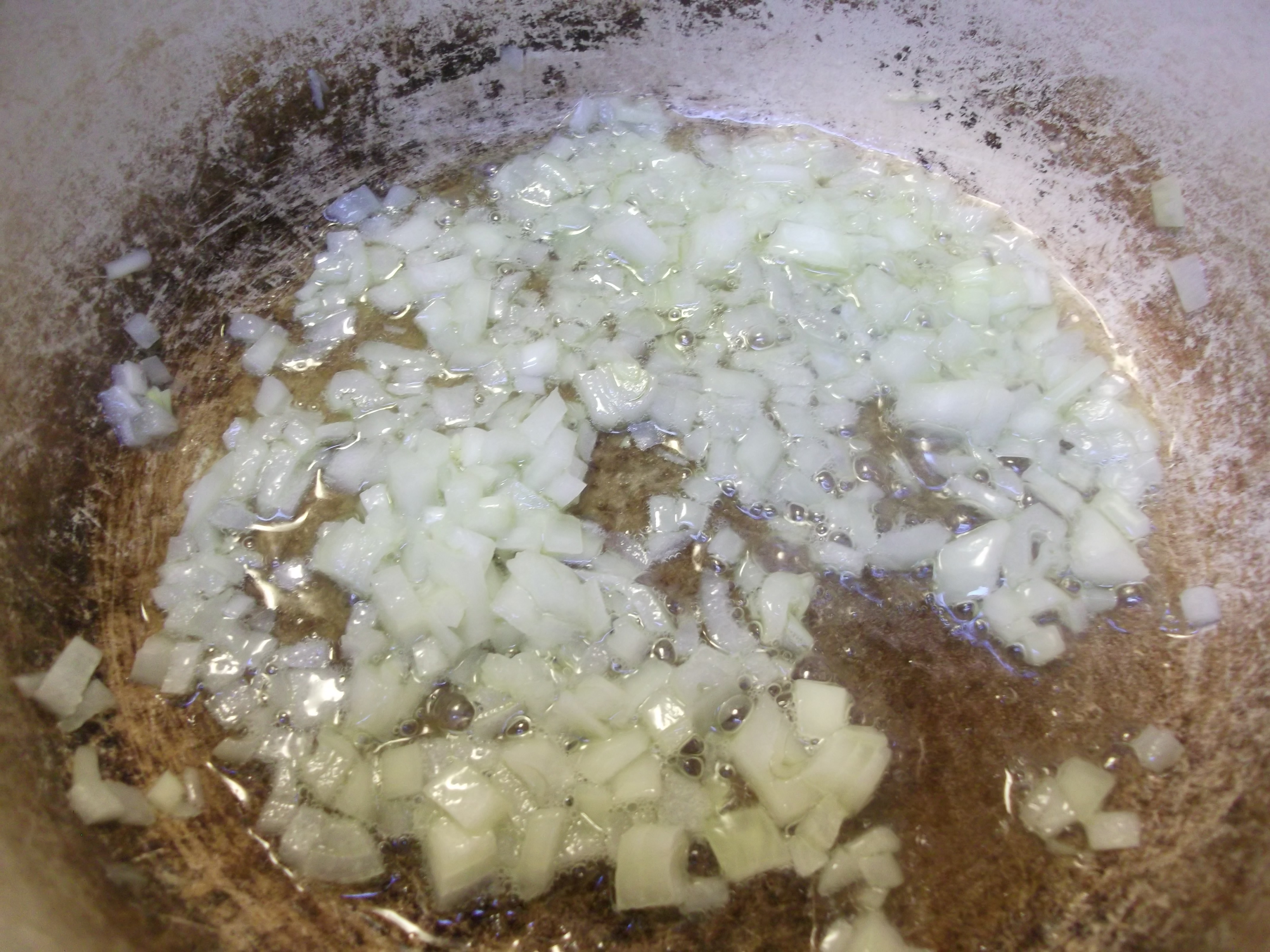 Add the onion to the melted oil and butter and sauté briefly over medium heat until translucent.