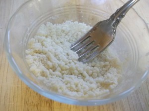 In a small bowl, mix the remaining butter with flour until it resembles coarse crumbs. I find this works best if the butter is at room temperature. Just stir and stir and stir with a fork: it will come together.