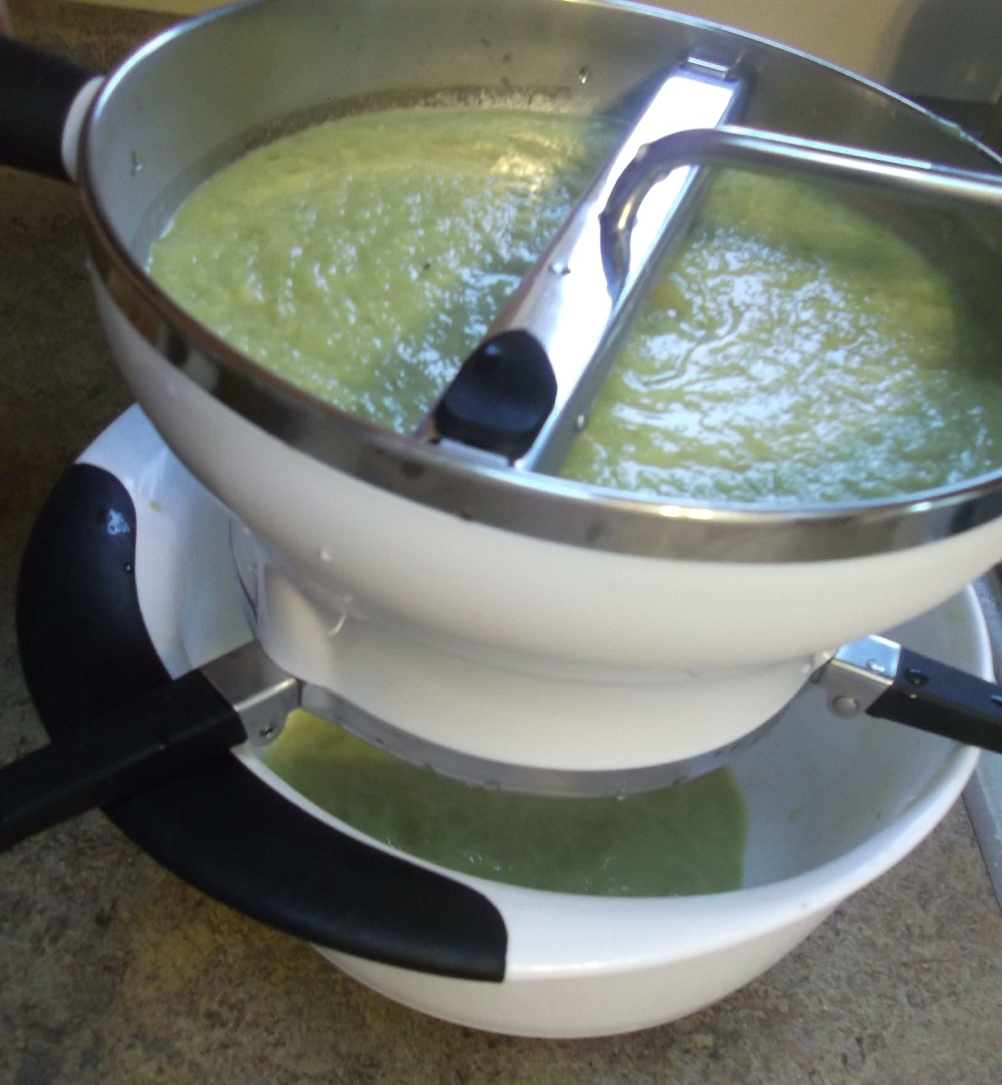 Here are the same solids after just a few minutes in the food mill.