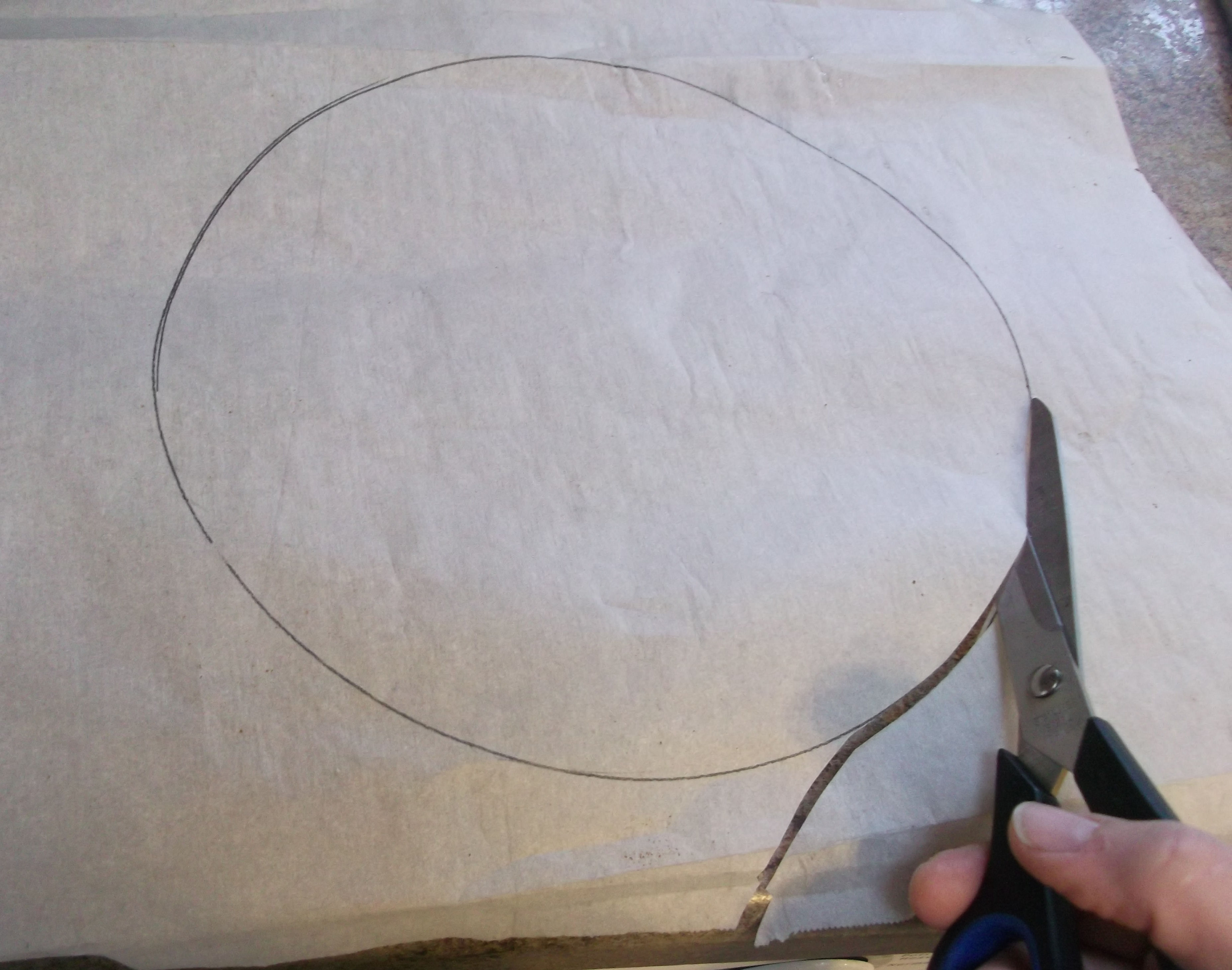 Place the pan on top of a large piece of parchment paper and use a pencil to trace around the bottom. (Most pens will not write on the paper very well.)