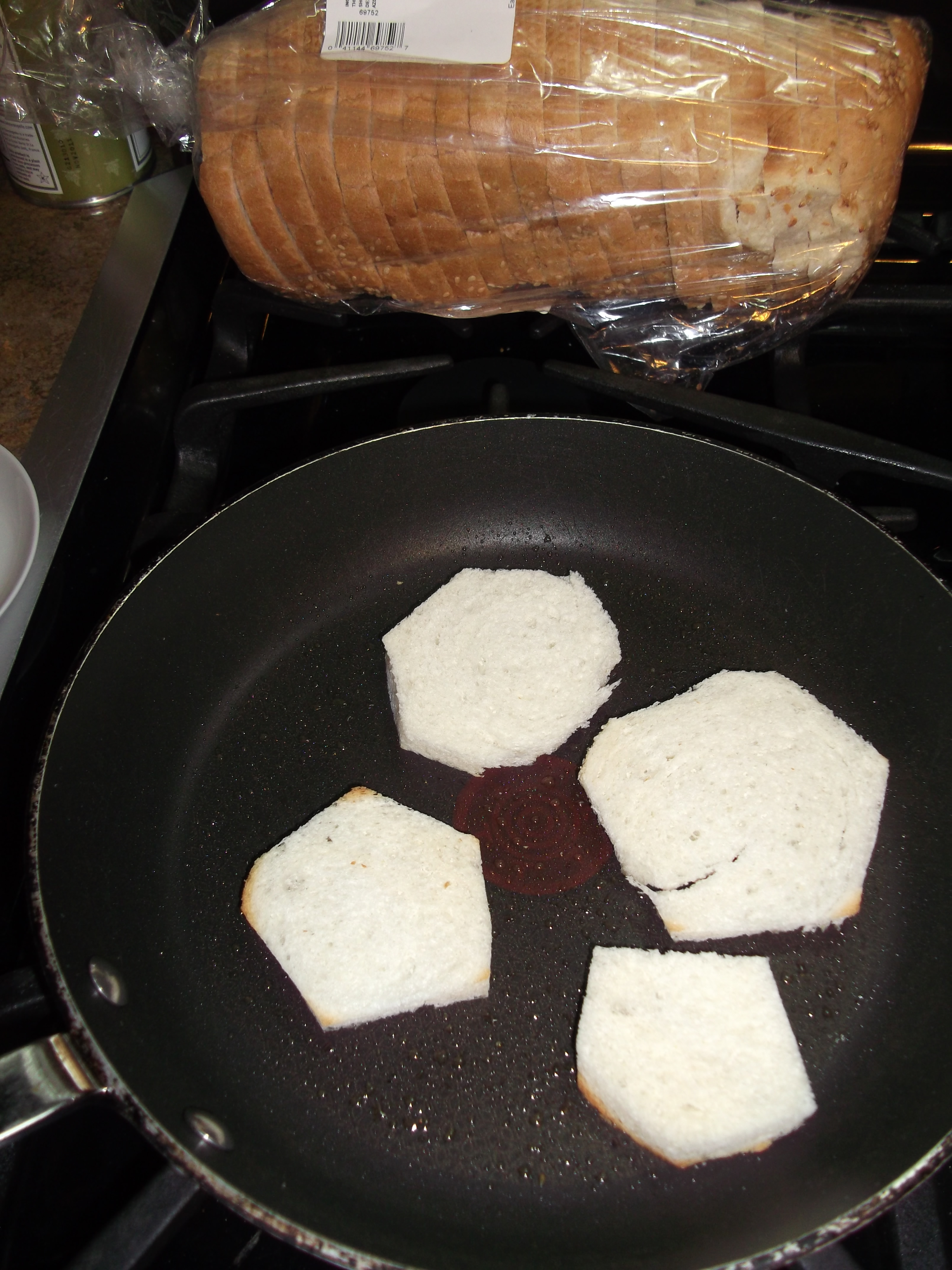 Toast the bread until lightly browned, about 30 seconds on each side. Remove the bread and set aside.