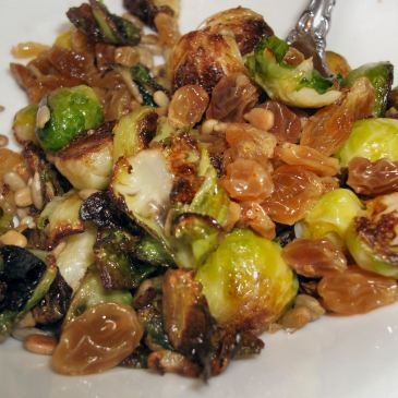 Crispy Brussels Sprouts with Sunflower Seeds and Raisins