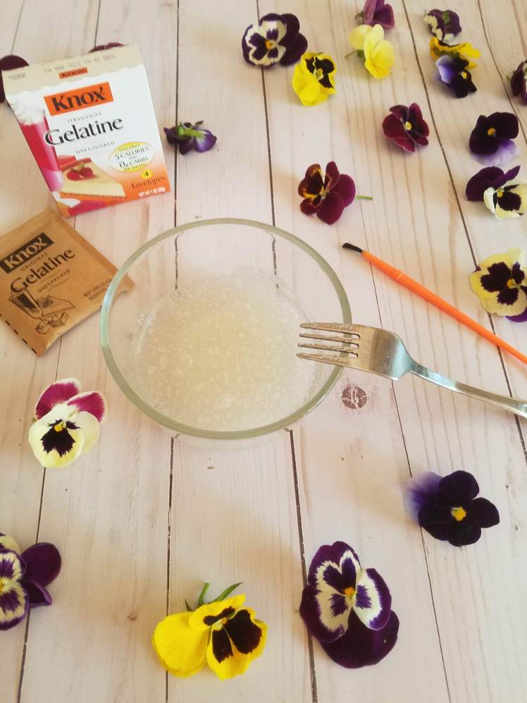 Use a small paintbrush to gently coat the tops and bottoms of each flower with the gelatin mixture.