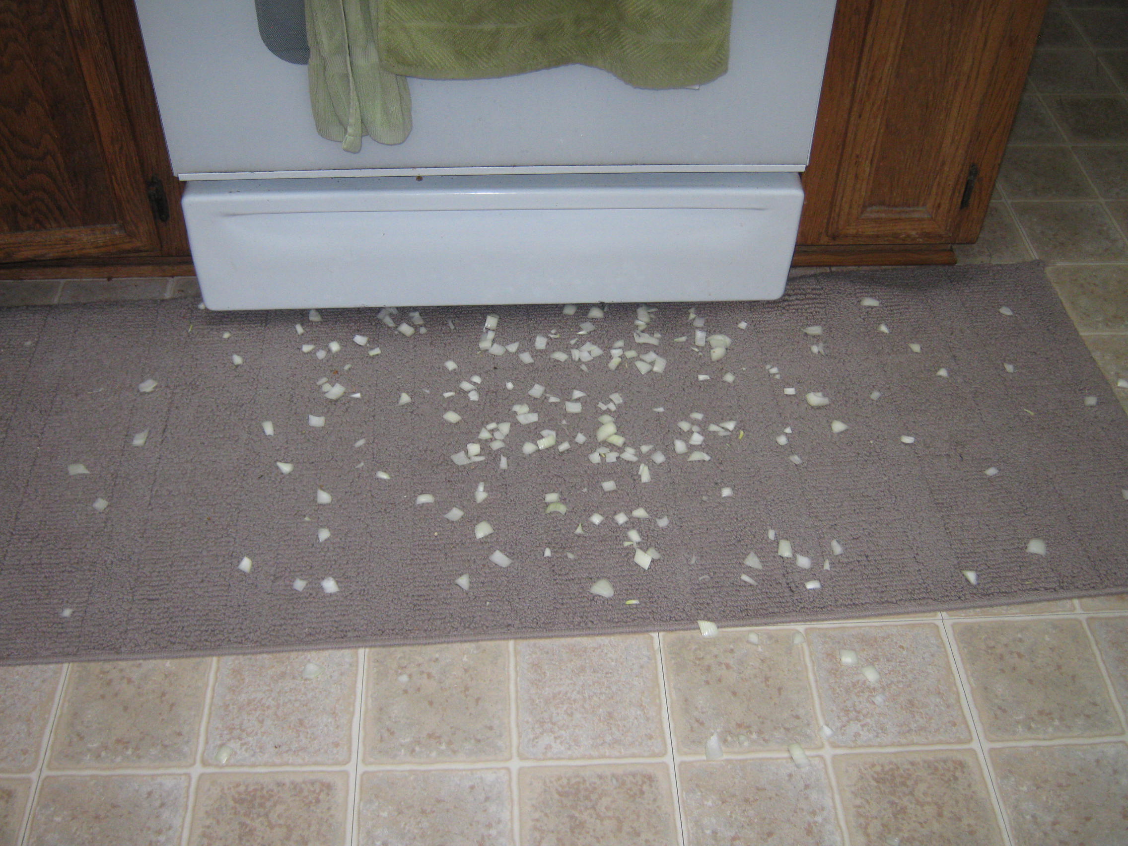 2) When making just about anything with onions (here I was making Pollo Al Chilindrón), be careful when adding them to a very hot pot. They will splatter, and your quick reflexes cause you to jerk your arm back before the onions are fully unloaded. And unfortunately, the three-second rule does not apply to this many onions.