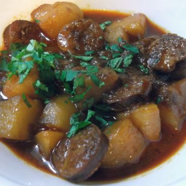 When a recipe is prefaced with a quote from a world-famous gourmand proclaiming it to be “one of the greatest dishes created by man,” pay attention. I think he just might be right about this dish. … More Rioja-Style Potatoes with Chorizo (Patatas a la Riojana)